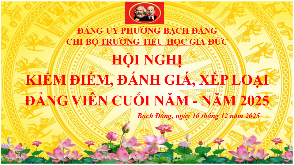 Thực hiện sự chỉ đạo của Đảng ủy phường Bạch Đằng, ngày 10/12/2025, Chi bộ Trường Tiểu học Gia Đức đã tổ chức Hội nghị Kiểm điểm, Đánh giá và Xếp loại Đảng viên cuối năm 2025.
