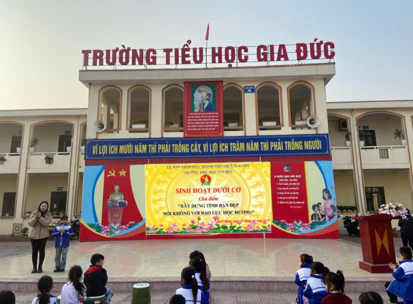 Thực hiện chương trình công tác Đội và phong trào thiếu nhi năm học 2024 – 2025, vào ngày 20/1/2025, Liên đội trường Tiểu học Gia Đức đã tổ chức sinh hoạt dưới cờ với chủ điểm “Xây dựng tình bạn đẹp, nói không với bạo lực học đường”.