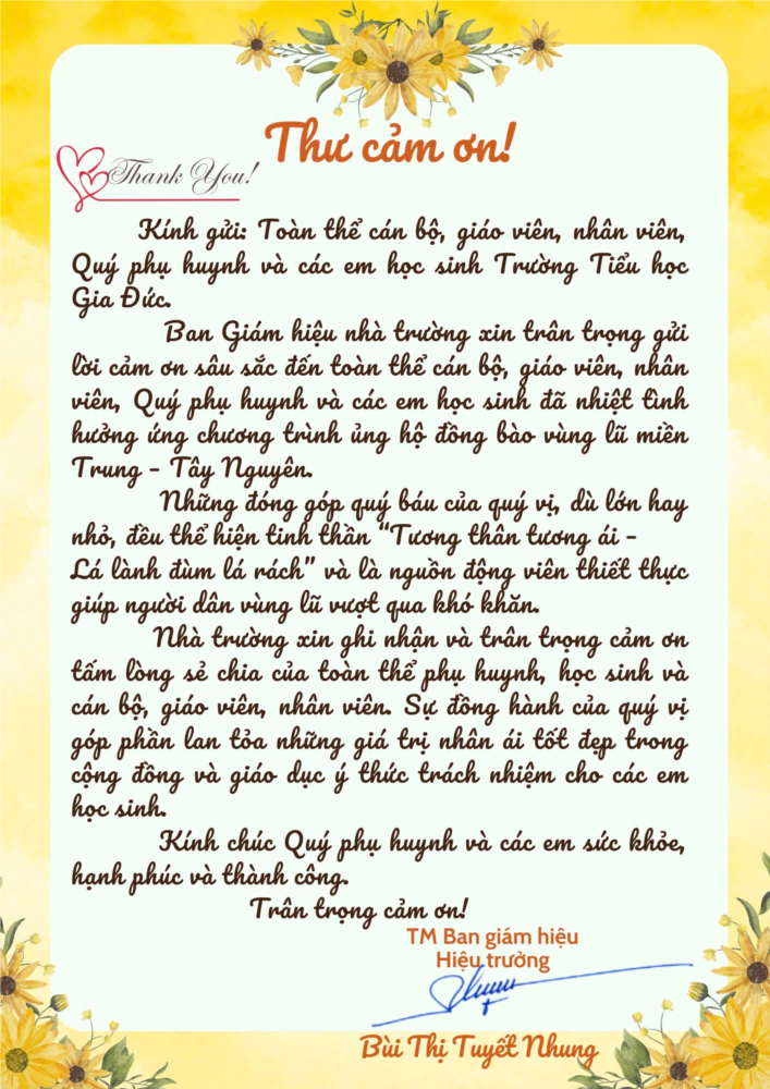 Nhà trường xin trân trọng cảm ơn các thầy cô, phụ huynh và các em học sinh đã chung tay ủng hộ đồng bào và học sinh vùng lũ.