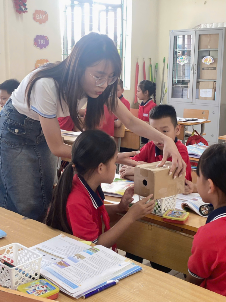 Xuyên suốt tiết học, học sinh được tự mình khám phá kiến thức thông qua các hoạt động và sự dẫn dắt khéo léo của cô giáo. Với sự thành thạo về công nghệ thông tin, cô giáo đã sử dụng công nghệ AI tạo ra nhân vật hoạt hình Mặt Trời đồng hành cùng các em học sinh trong suốt tiết học, đưa ra video trực quan thí nghiệm, từ đó giúp học sinh nhận biết các vật phát sáng và các vật được chiếu sáng. Nêu được cách làm và cách thực hiện được thí nghiệm tìm hiểu về sự truyền thẳng của ánh sáng; về vật cho ánh sáng truyền qua và vật cản ánh sáng. Vận dụng được kiến thức để giải thích được một số hiện tượng tự nhiên và ứng dụng thực tế. Rèn luyện kĩ năng làm thí nghiệm, hoạt động trải nghiệm, qua đó góp phần phát triển năng lực khoa học.